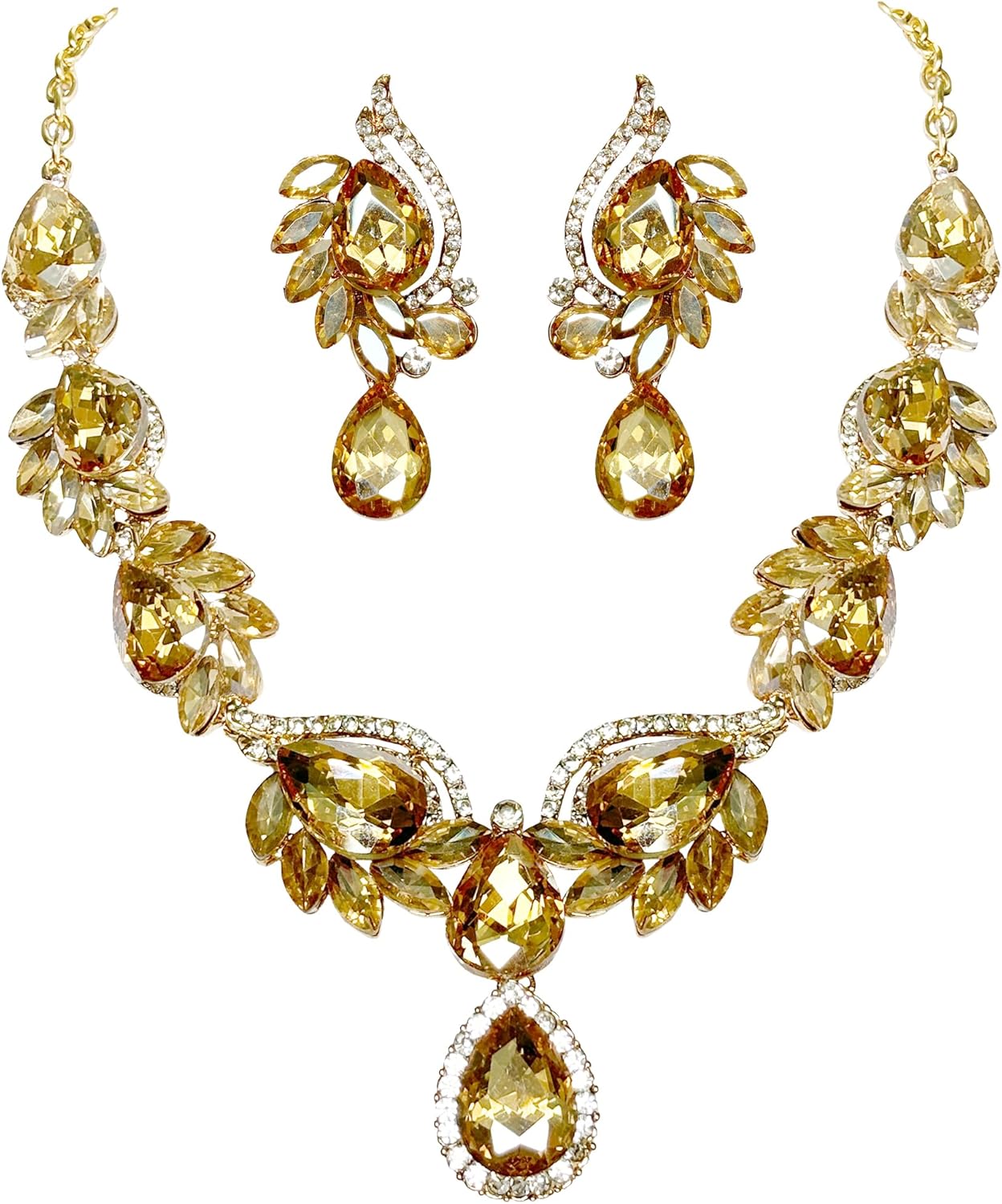 Women Jewelry Set Rhinestone Crystal Bride Statement Choker Necklace Teardrop Cluster Dangle Earrings Set for Wedding Prom Party