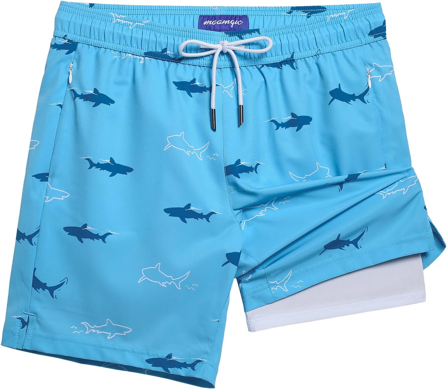 maamgic Mens Swim Trunks with Compression Liner 7" Bathing Suit Quick Dry Swimming Trunks for Men with Zipper Pockets