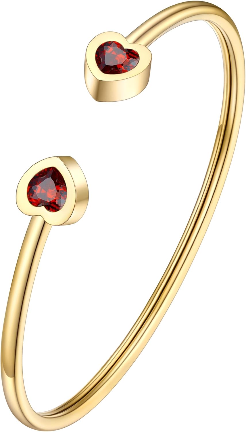 PROSTEEL Birthstone Bracelets for Women, Jan-Dec, Gold Plated Stainless Steel Heart Bangle Cuff, Fit Wrist from 5.5''-7'' in Circumference, Come with Box