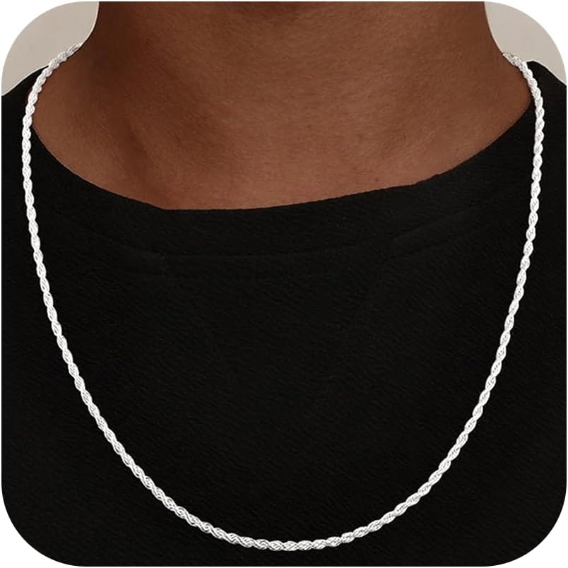 925 Sterling Silver Diamond Cut 3mm 4mm 5mm Rope Chain Exquisite Silver Chain Men's Necklace Ideal Gift for Men Fathers and Boyfriends