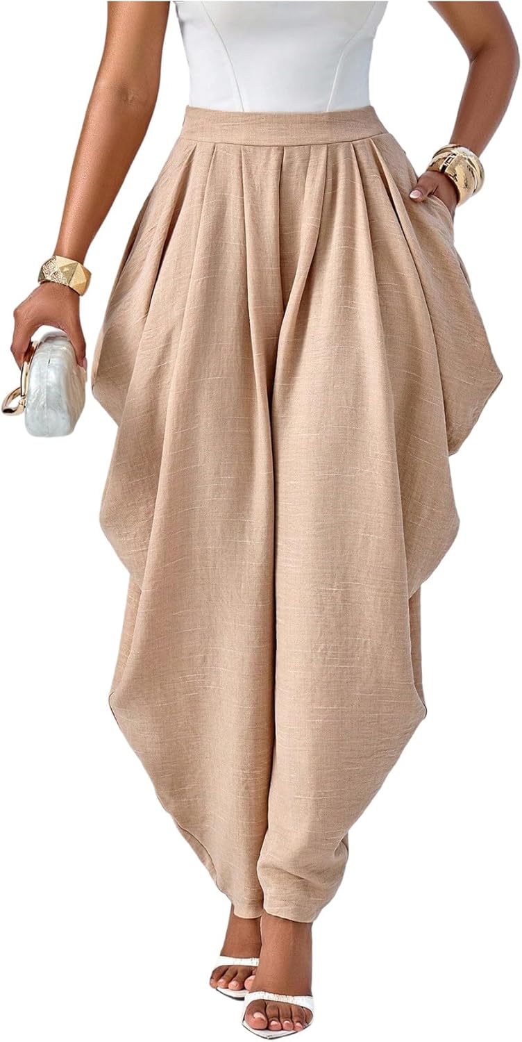 Milumia Women's Boho Baggy Harem Pants Elastic High Waist Casual Lounge Trousers with Pockets