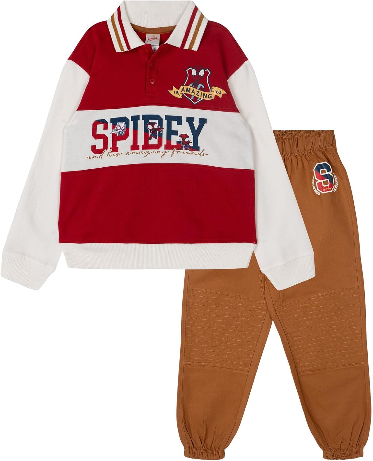 Marvel Spidey and His Amazing Friends Spider-Man Fleece Polo Shirt & Joggers Outfit Toddler to Big Kid Sizes (2T - 10-12)