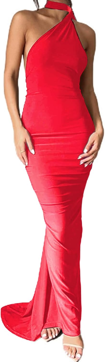 Women Bodycon Maxi Dress Sexy Sleeveless Backless Ruched Bodycon Long Dress Elegant Prom Dresses