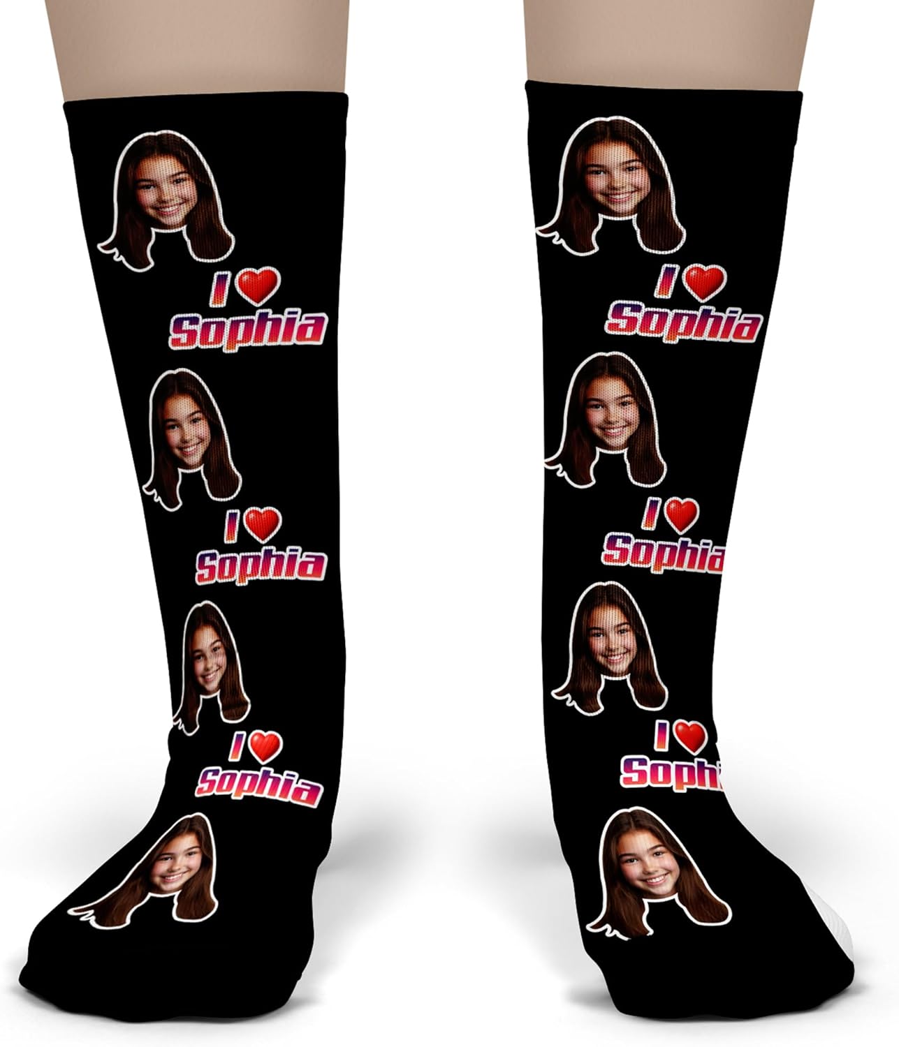 Bleu Reign Upload Your Face Custom I Love Name Socks – Personalized Photo Socks with Custom Text – Funny Gift for Couples, Anniversary, Valentine’s Day, Birthday, Christmas