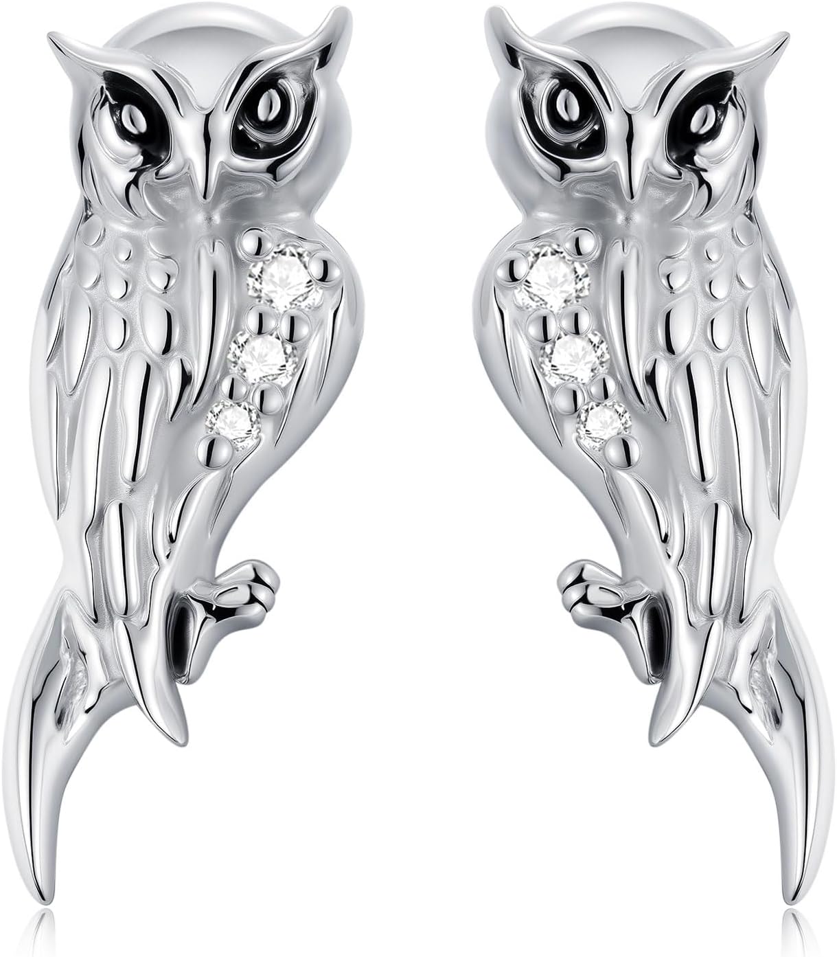 Diamond Owl Stud Earrings for Women 925 Sterling Silver Hypoallergenic Wisdom Owl Earrings Studs Cute Animal Jewelry Christmas Gift for Her