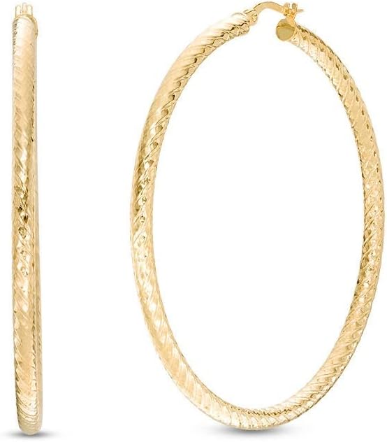 TGP 18K Gold Plated Twist Engraved Hoop Earrings for Women, Lightweight Gold Round Tube Hoops 60mm