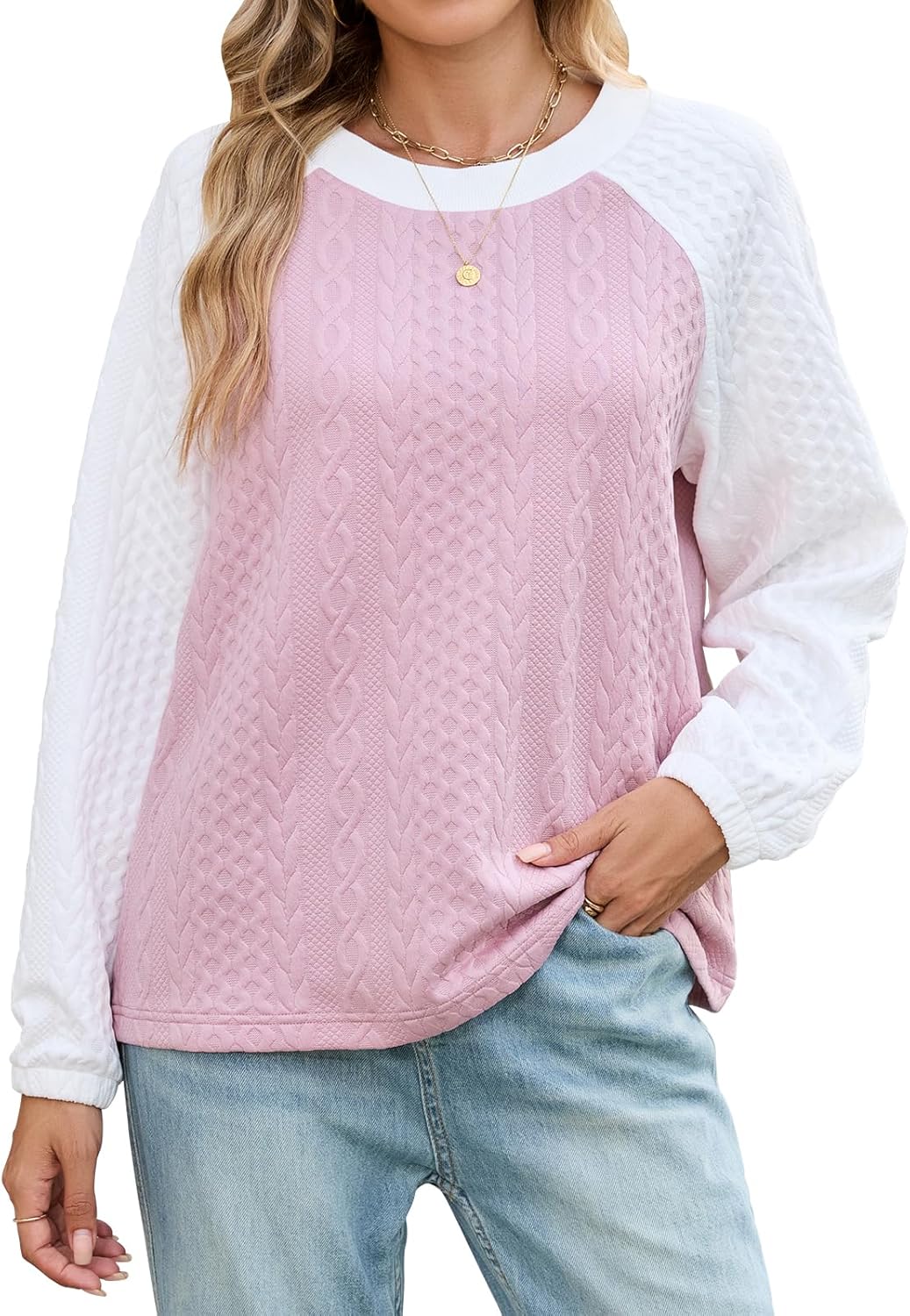 Fall Sweatshirts for Women 2025 Color Block Crew Neck Pullover Long Sleeve Sports Tunic Tops for Teen Girl
