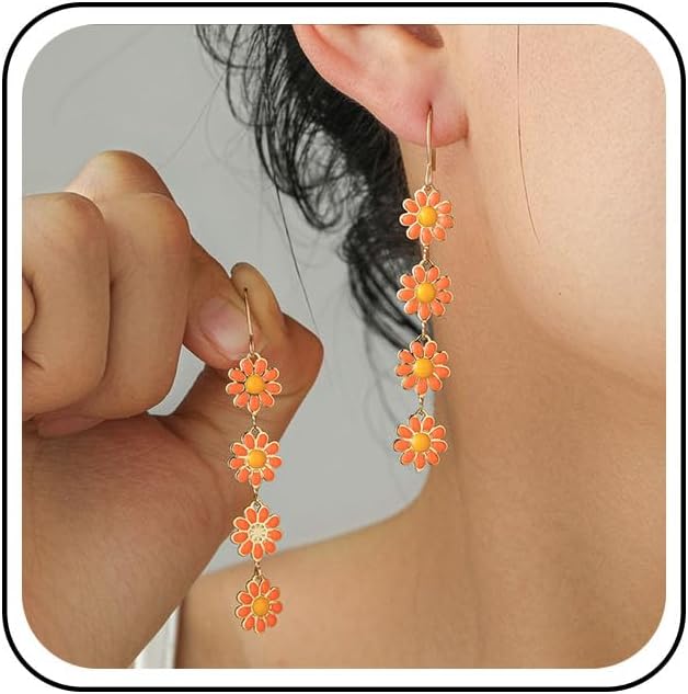 Boho Sunflower Earrings Vintage Daisy Flower Long Tassel Earrings Long Flower Daisy Earrings Summer Sunflower Daisy Drop Earrings Jewelry for Women(Pink)