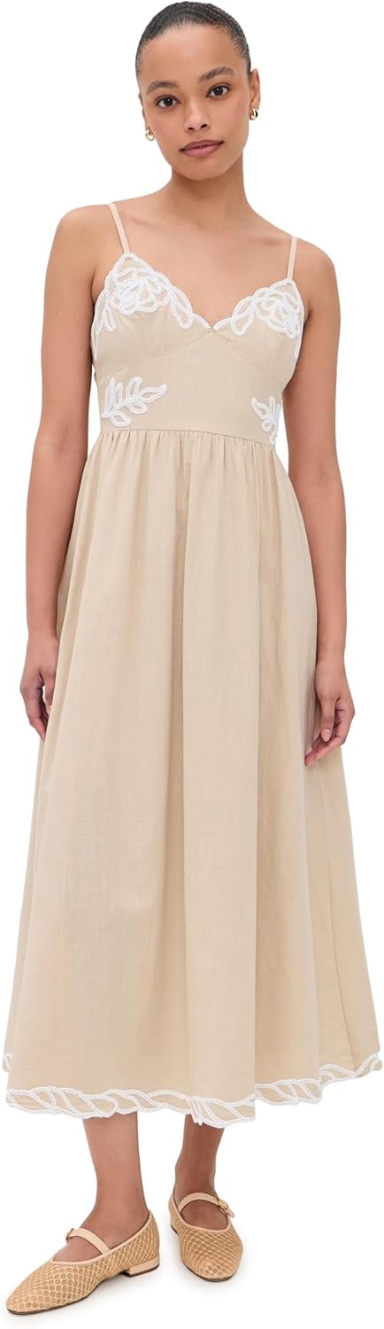 MOON RIVER Women's Spaghetti Strap Embo Artwork Midi Dress