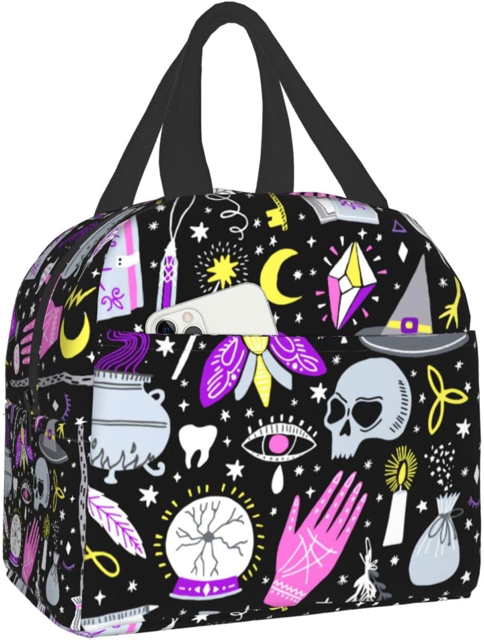 Magic Witch Goth Lunch Box Reusable Lunch Bag Insulated Meal Bags Food Container For Girls Boys Kids Men Women School Work Travel Picnic