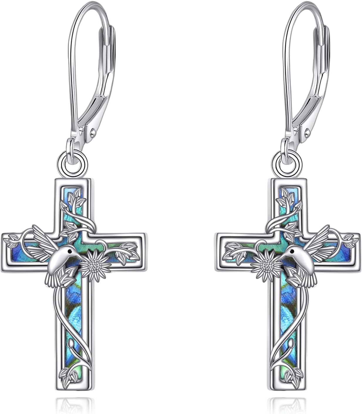 YFN Cross Earrings Sterling Silver Dangle Drop Leverback Cross Earrings Religion Jewelry Christians Gifts for Women Men