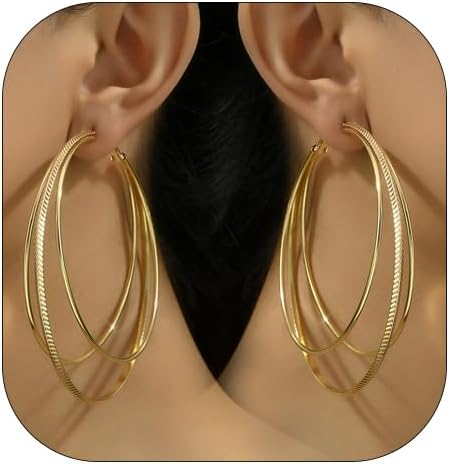 Dainty Big Large Circle Dangle Earrings for Women Boho Layered Hoop Drop Earrings Geometric Three Layers Round Statement Earrings Jewelry Gifts