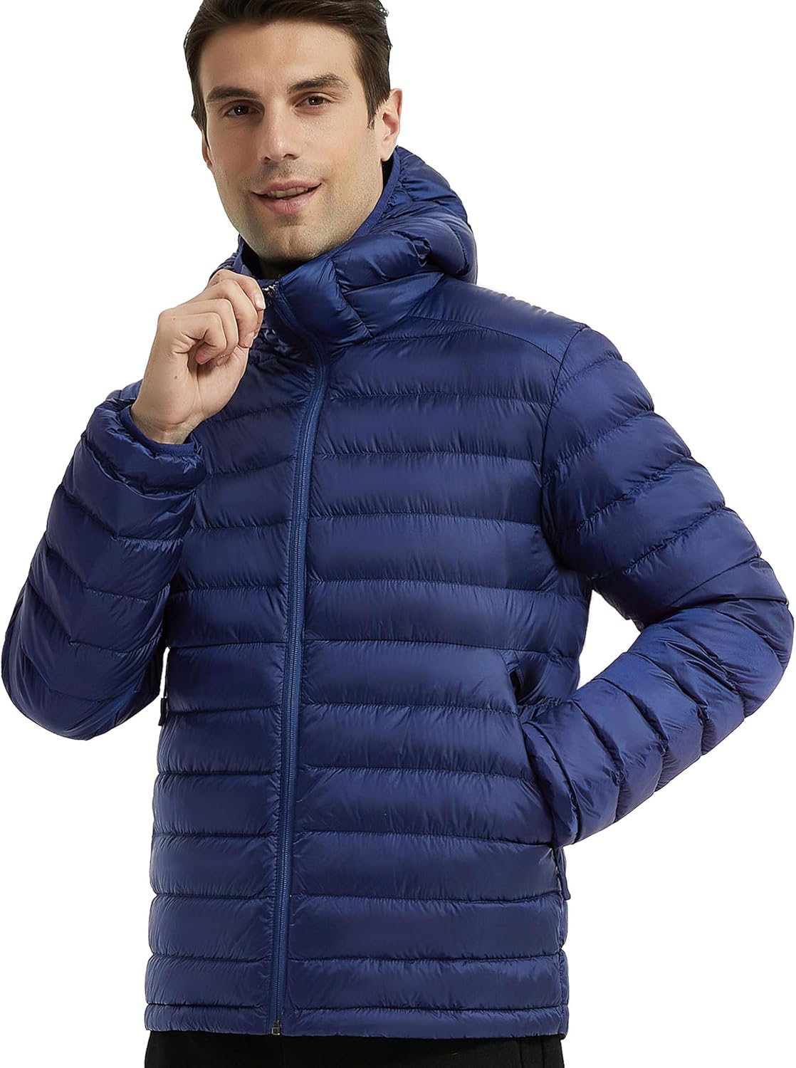 Lesmart Men Down Jacket Puffer Winter Jacket with Hooded Packable Lightweight Windproof Insulated Warm Coat