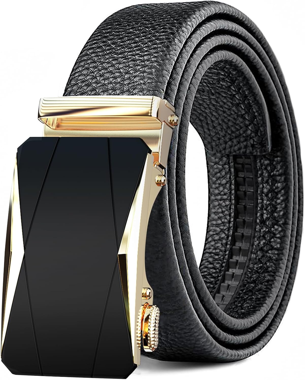 Men's Belt,Leather Ratchet Dress Belts with Sliding Adjustable Belts Dress Casual Jeans Comfort Trim to Fit
