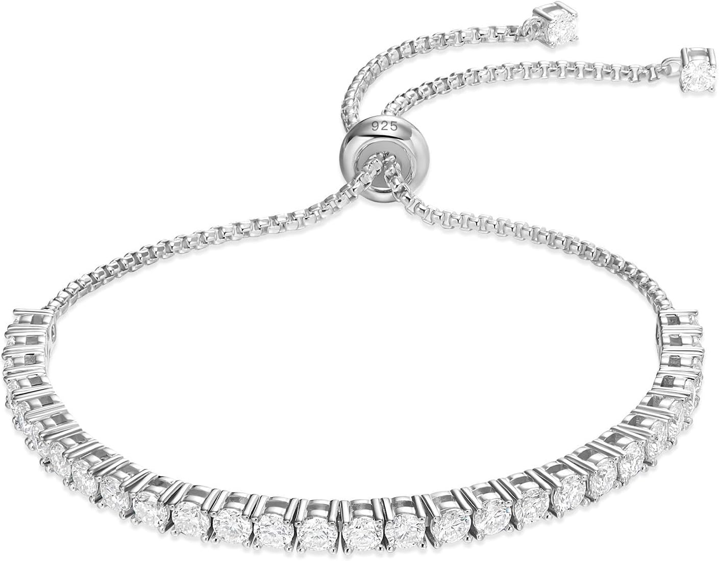 LOVE&LOVE Moissanite Tennis Bracelet for Women, Adjustable 18K White Gold Plated 925 Sterling Silver Bracelet, 3mm D VVS1 Round Cut, Luxury Jewelry Gift for Wife Mom Girlfriend Birthday Anniversary
