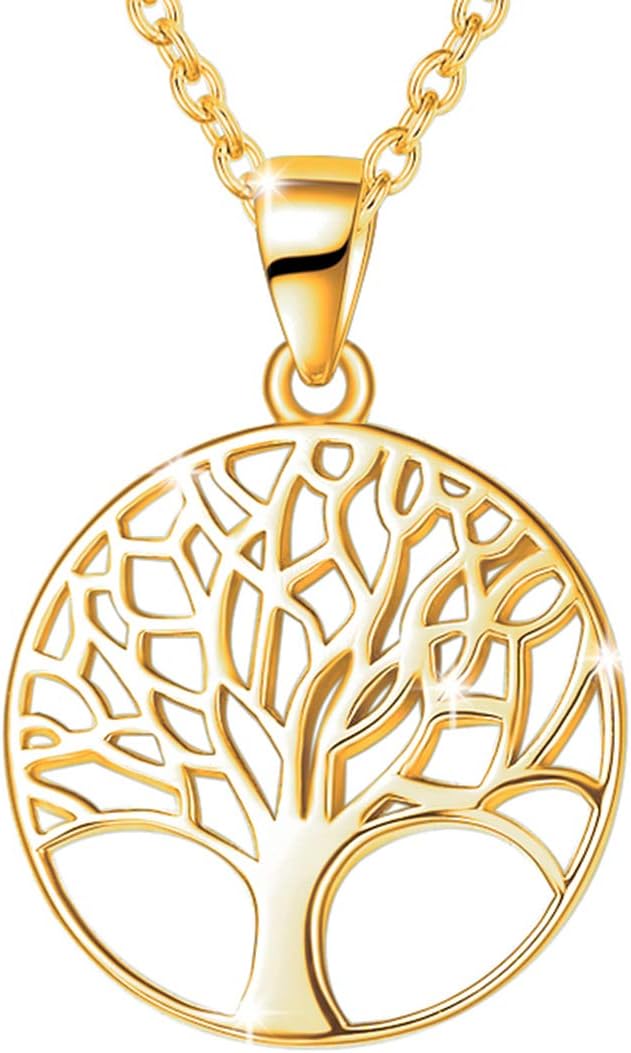 AGVANA Gold Plated Sterling Silver Tree of Life Pendant Necklace Earrings for Women Dainty Family Tree Jewelry for Her Anniversary Birthday Gifts for Mom Wife Lover Grandma Her, 16+2 Inches