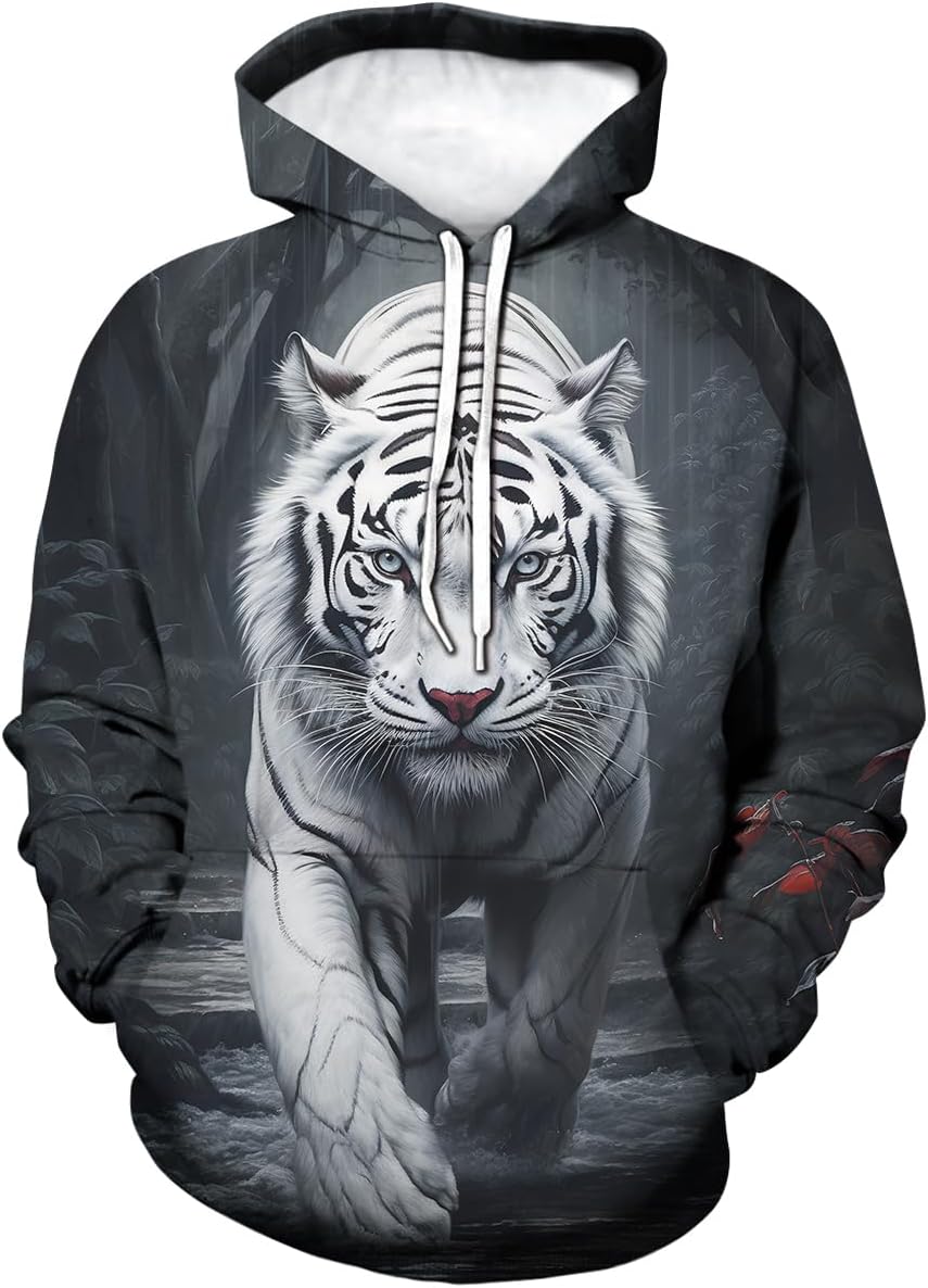 Vintage Spicy Ink Tiger Cool Graphic Hooded Sweatshirts Pullover Gorgeous White Tiger Hoodie Hoodies