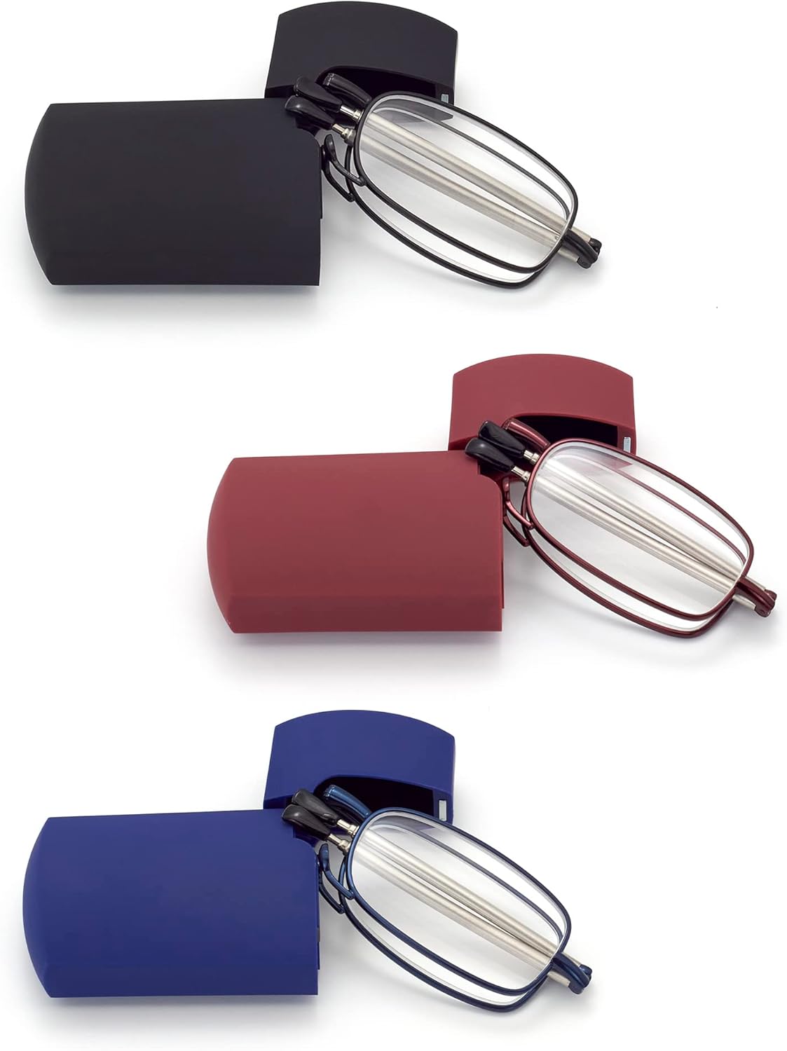 HIGHLIKE Hard Cases Folding Reading Glasses, Pocket Wallet Purse Compact Spring Hinge Readers, Transparent Clear Lens
