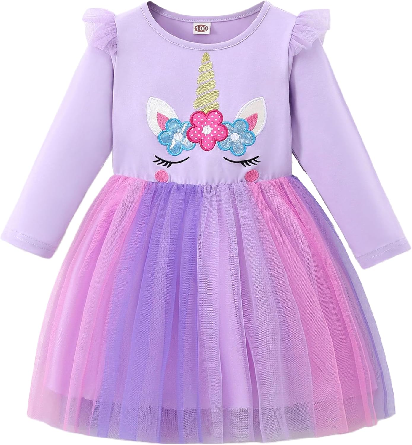 Girls Tutu Dresses Toddler Winter Long Sleeve Party Tulle Dresses for 18M-7T