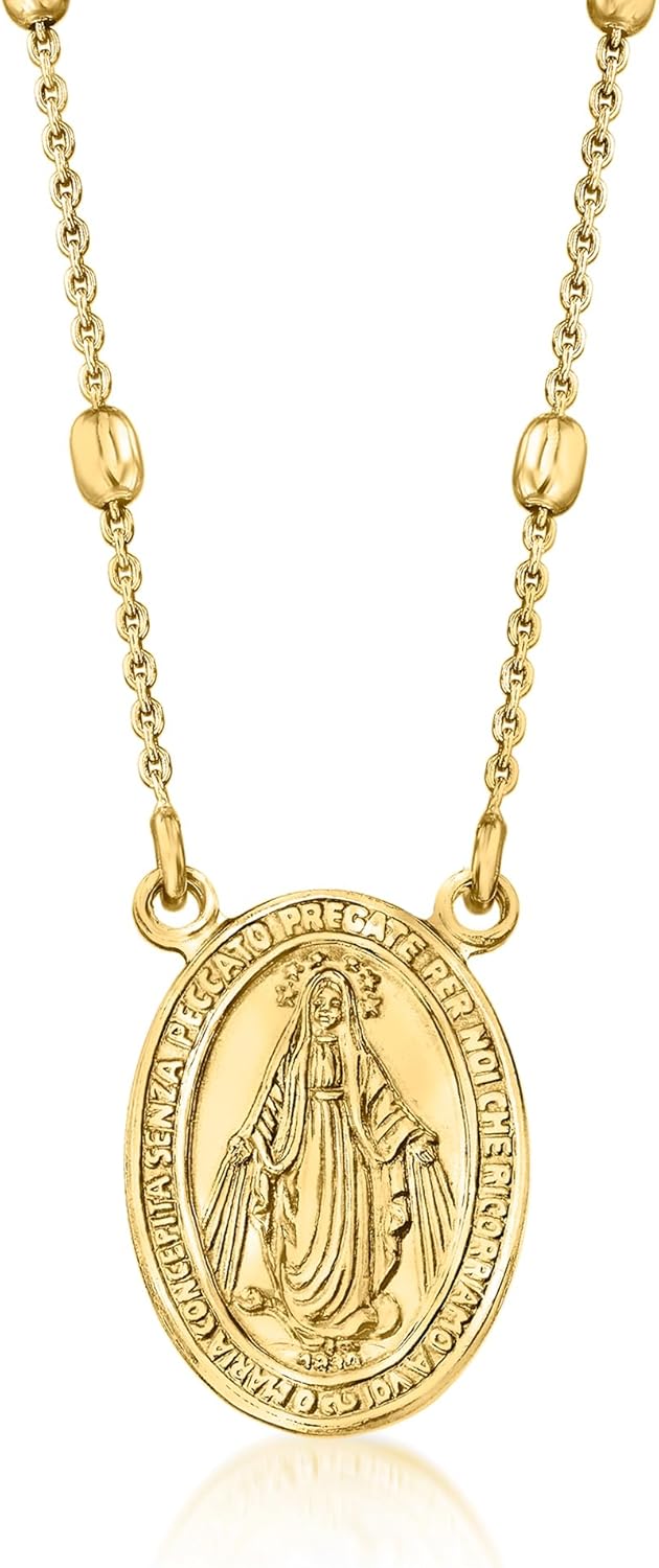 Ross-Simons Italian 18kt Gold Over Sterling Miraculous Medal Bead Station Necklace