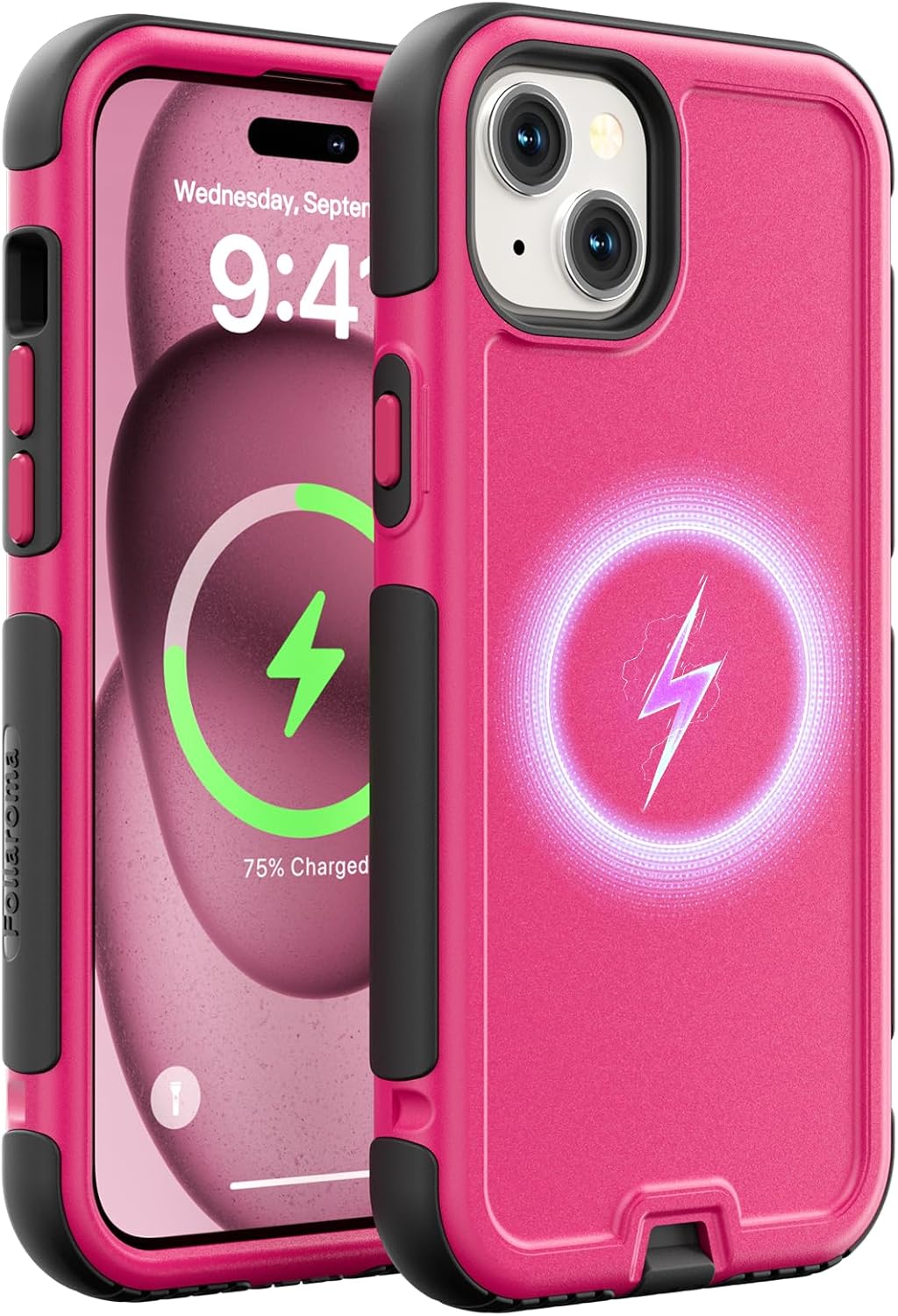 for iPhone 15 Case, Compatible with MagSafe, Heavy Duty Shockproof Protective Phone Case, Anti-Drop Protection, Dual Layer Magnetic Phone Cover for iPhone 15, 6.1", Hot Pink