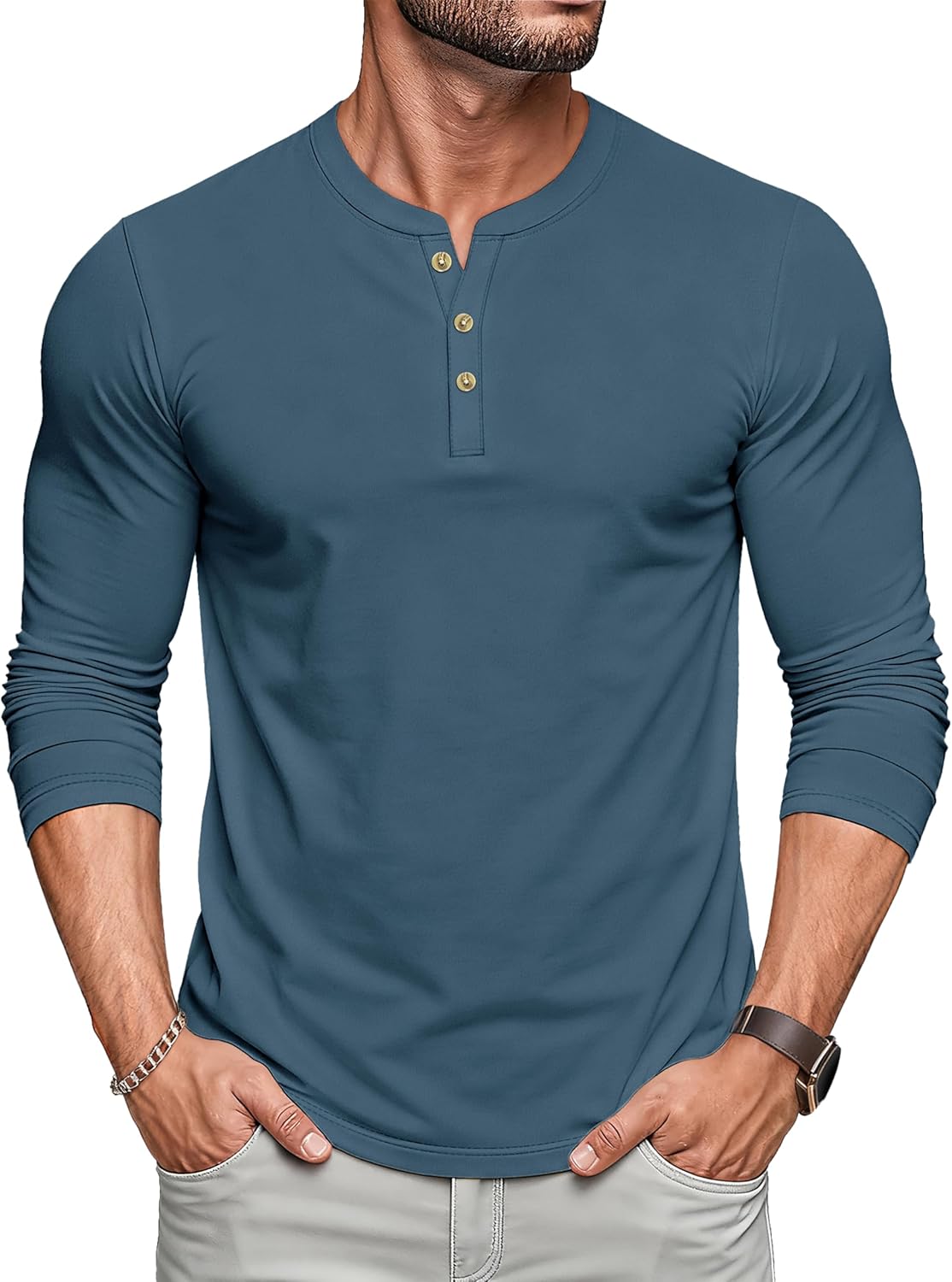 MAGCOMSEN Men's Henley Shirts Long Sleeve Button Shirts Moisture Wicking Tees Casual Basic Solid Pullover Shirt