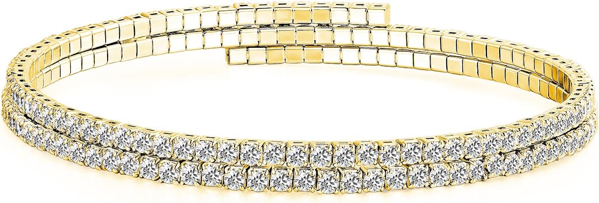 AiliFe Cuff Tennis Bracelet for Women: Crystal Adjustable Cubic Zirconia Silver Bangle - 14K Gold Plated Red Rhinestone Bracelets for Party Favors Bride Wedding Jewerly