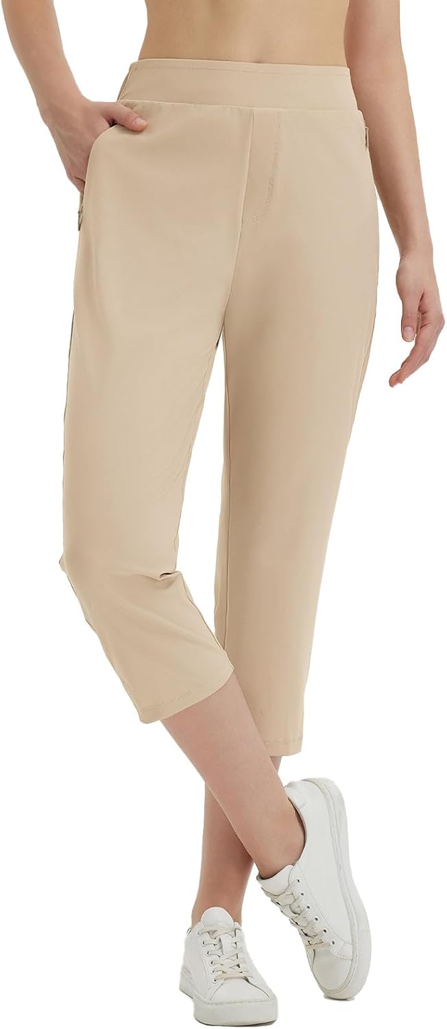baleaf 20'' Women Capris with Pockets Stretch Golf Work Dress Cropped Pants Straight Leg High Waisted Pull On Summer
