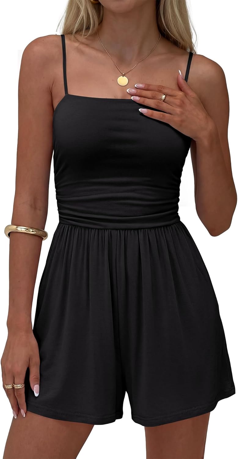 BTFBM Summer Rompers For Women 2026 Casual One Piece Spaghetti Strap Sleeveless Shorts Jumpsuit Beach Vacation Outfits