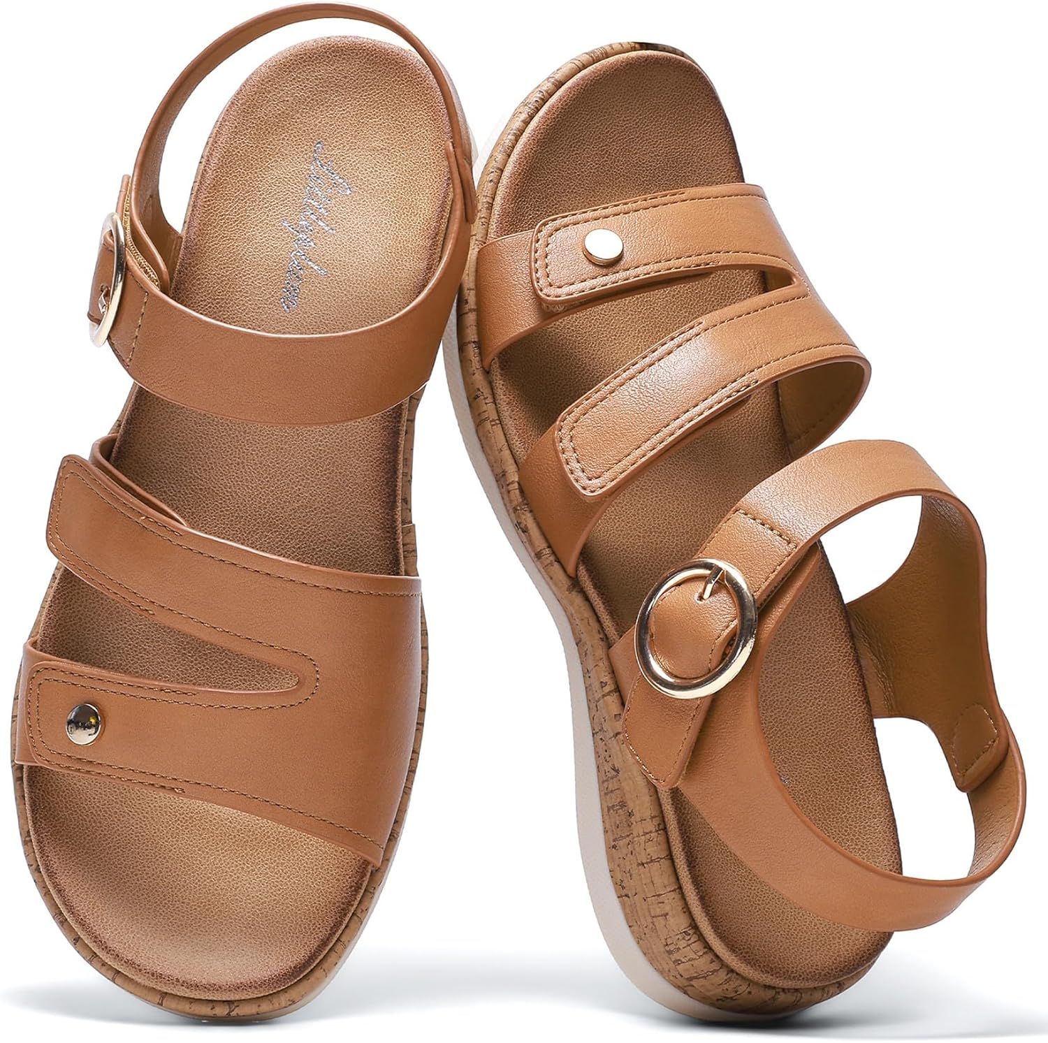 Women Sandals with Arch Support Open Toe Flat Sandals Walking Comfy Casual Adjustable Summer Sandal
