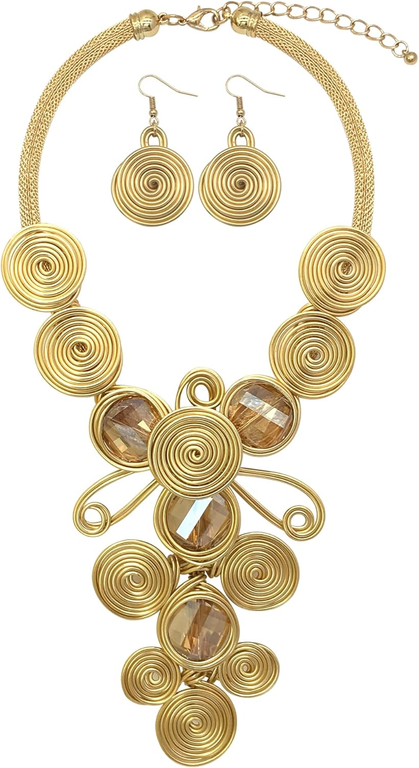 Statement African Necklace For Women African Jewelry Costume Earring Sets Tribal Fashion Colorful Big Rhinestone Crystal Pendent Collar Choker Bold Chunky Bib Handmade