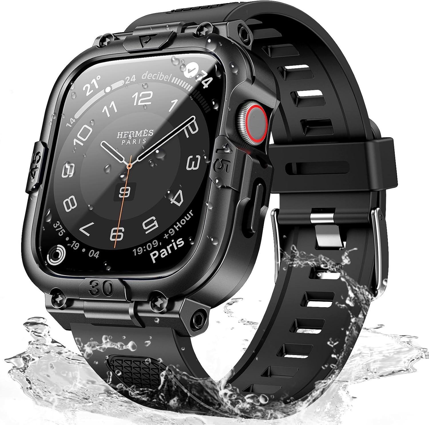 Mosonio Sport Rugged Case with Band for Apple Watch Band 46mm 45mm 44mm 42mm (S11/S10)41mm 40mm, Light TPU Bands with Cover and Screen Protectors for Men, Waterproof Strap for iwatch Series 11 10 9 8 7 6 5 4 SE