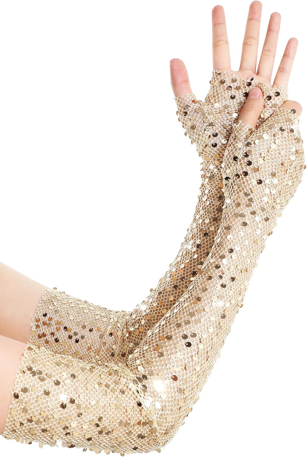 BABEYOND Opera Gloves for Women - Long Fingerless Sequin Sparkling Glitter Gloves Tea Party Stretchy Adult Size Elbow Length