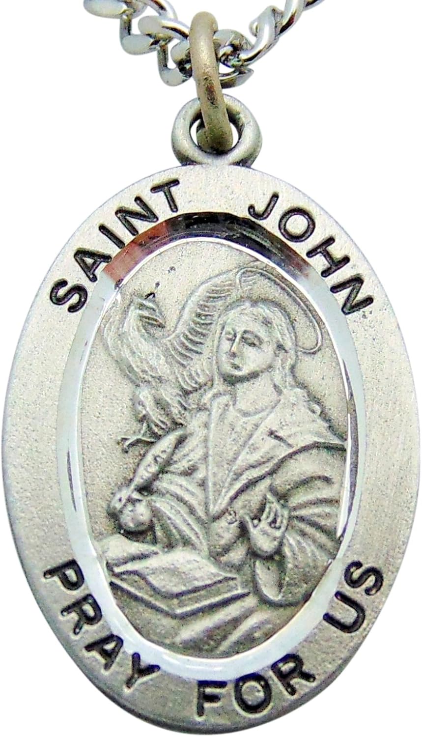 Westman Works St John Solid Pewter One Inch Saint Medal with Stainless Steel Chain