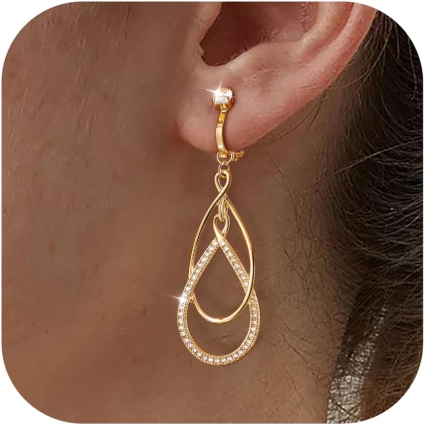 Clip on Earrings for Women Statement Drop Dangle Earrings for Women Jewelry Hypoallergenic Trendy 14K Gold/Silver Plated Earring Non Pierced Earring Jewelry Gifts Wedding Party Fashion Trendy Jewelry Gifts