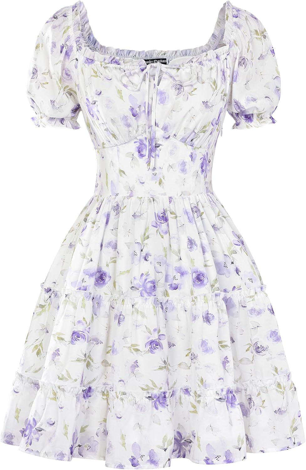 Scarlet Darkness Floral Corset Mini Dress Women Teen Summer Off Shoulder Dress Graduation Cute Sundress with Pockets