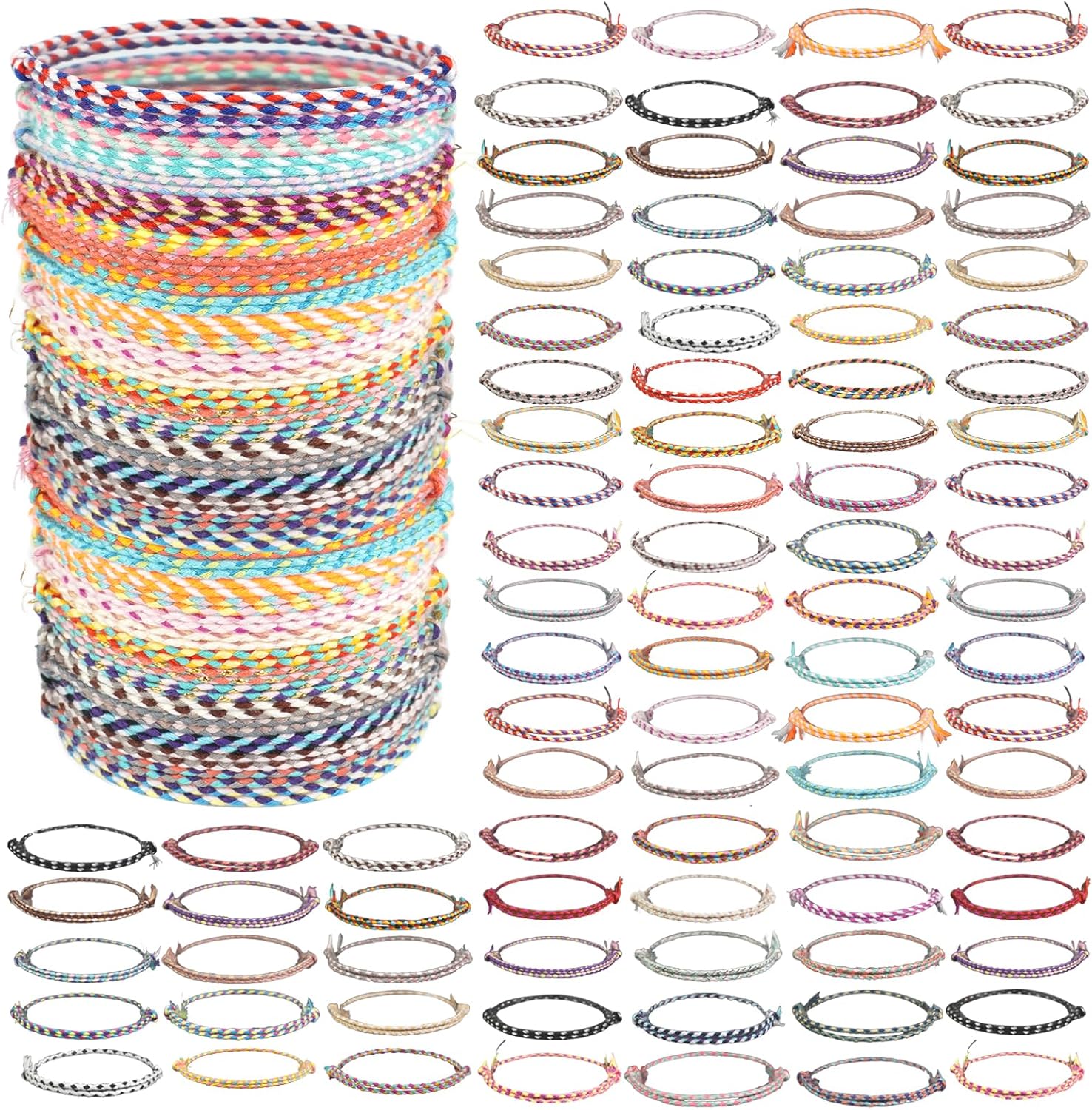 120 Pcs Woven Wrap Friendship Bracelets Adjustable Thread Braided Bracelet Handmade Beach String Bracelets for Birthday Gifts Women Party Favors