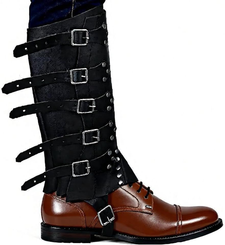 ITODA Medieval Boot Covers for Halloween PU Leather Pirate Costume Punk Renaissance Halloween Cosplay Men's Knight Leg Guard