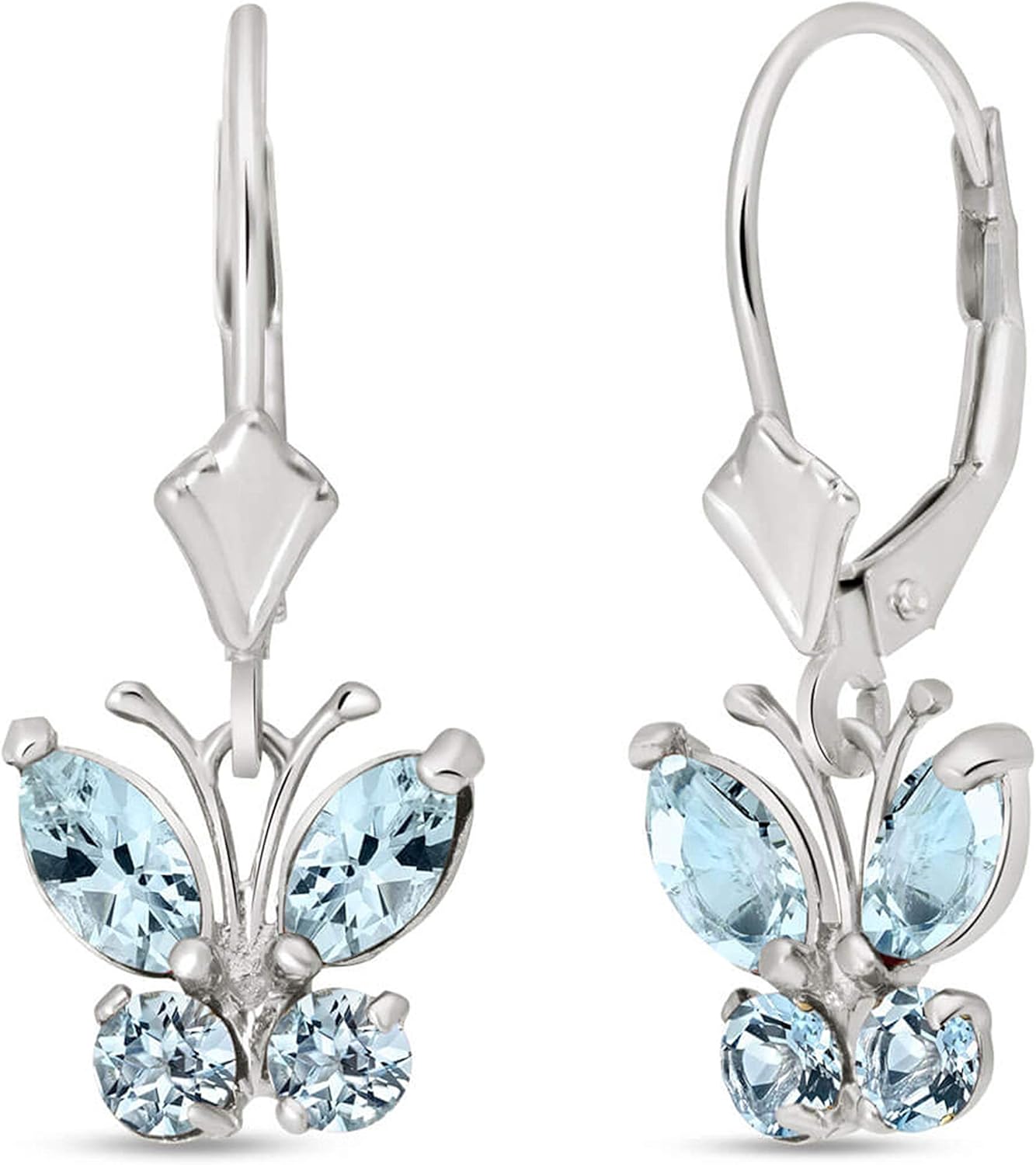 14k White Gold Butterfly Earrings with Natural Aquamarines