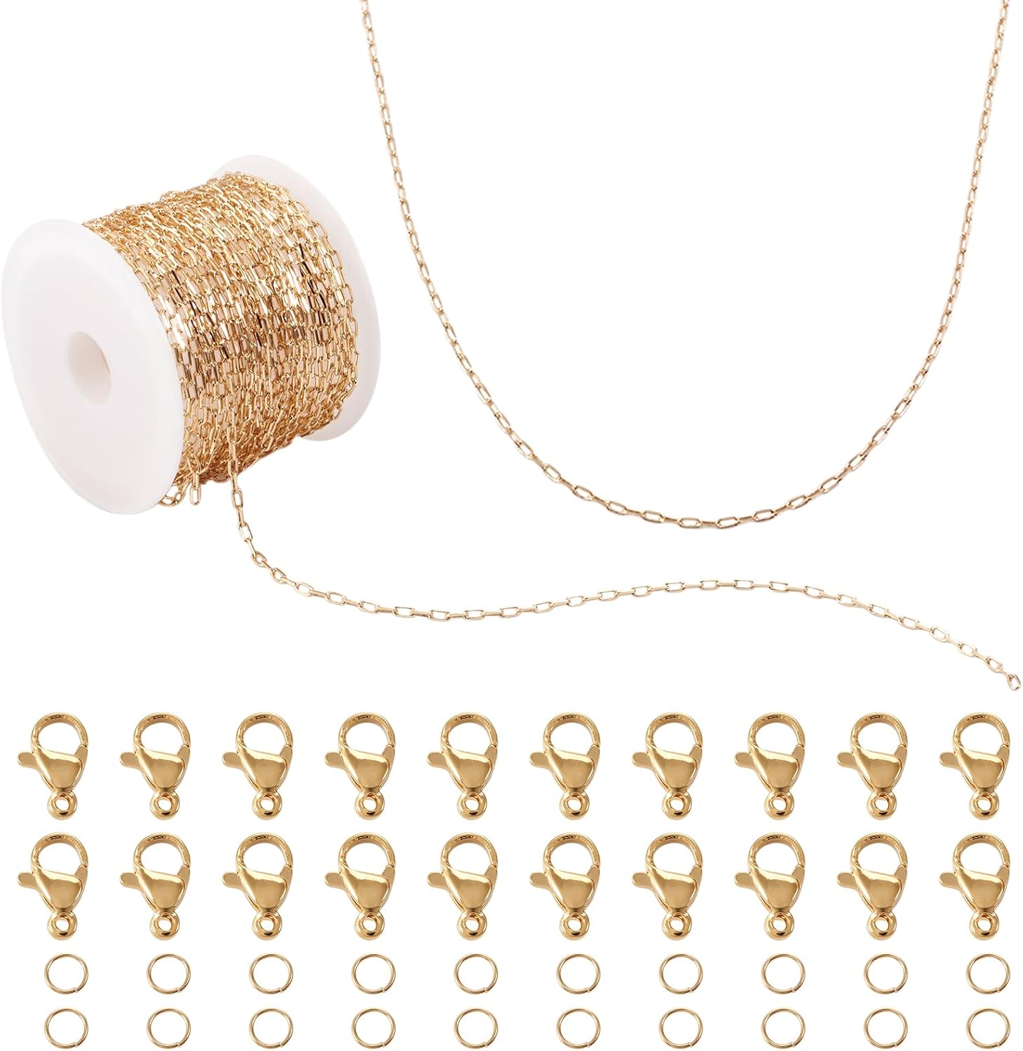 - Complete Jewelry Making Kit: Our 14K gold plated cable chain making kit includes everything you need to start crafting beautiful jewelry. With 16.4 feet (about 5 meters) of cable chains, 40 open jump rings, and 20 lobster claw clasps, you'll have all the materials necessary for easy crafting and wearing.