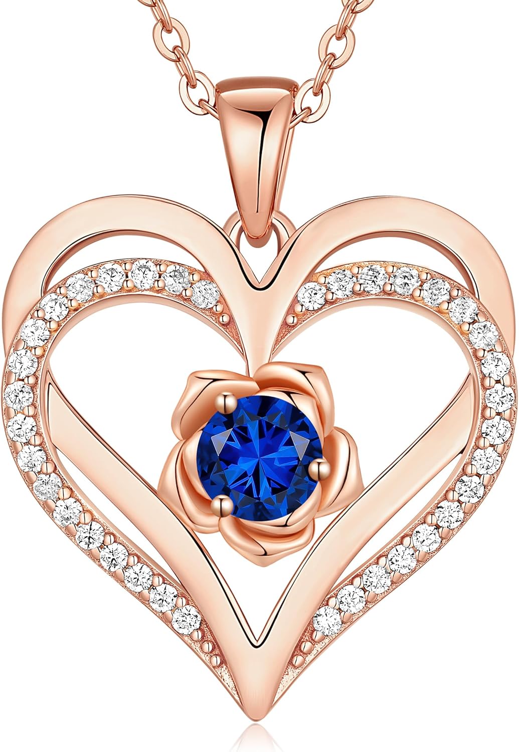 CDE Valentines Day Gifts for Women S925 Silver Rose Gold Heart Birthstone Necklaces for Women,Ideal Anniversary or Birthday Jewelry Gifts for Wife Girlfriend Her