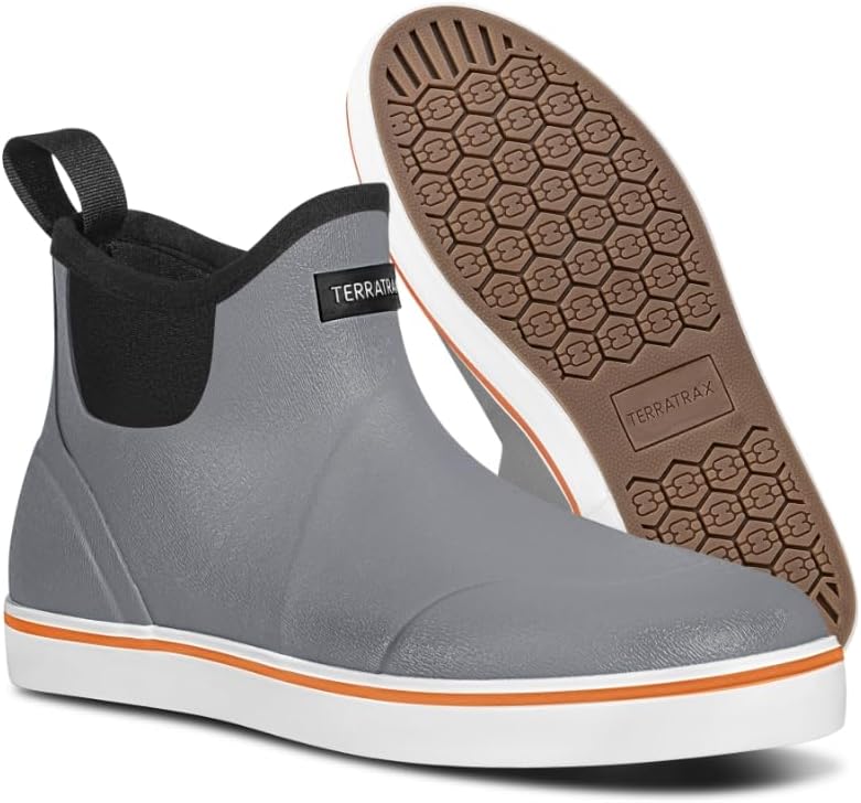 Men's Waterproof Deck Boots, Short Ankle Rain Boots for Fishing, Farming & Mud - Anti-Slip Neoprene Slip On Shoes for Garden, Slush & Boat Deck
