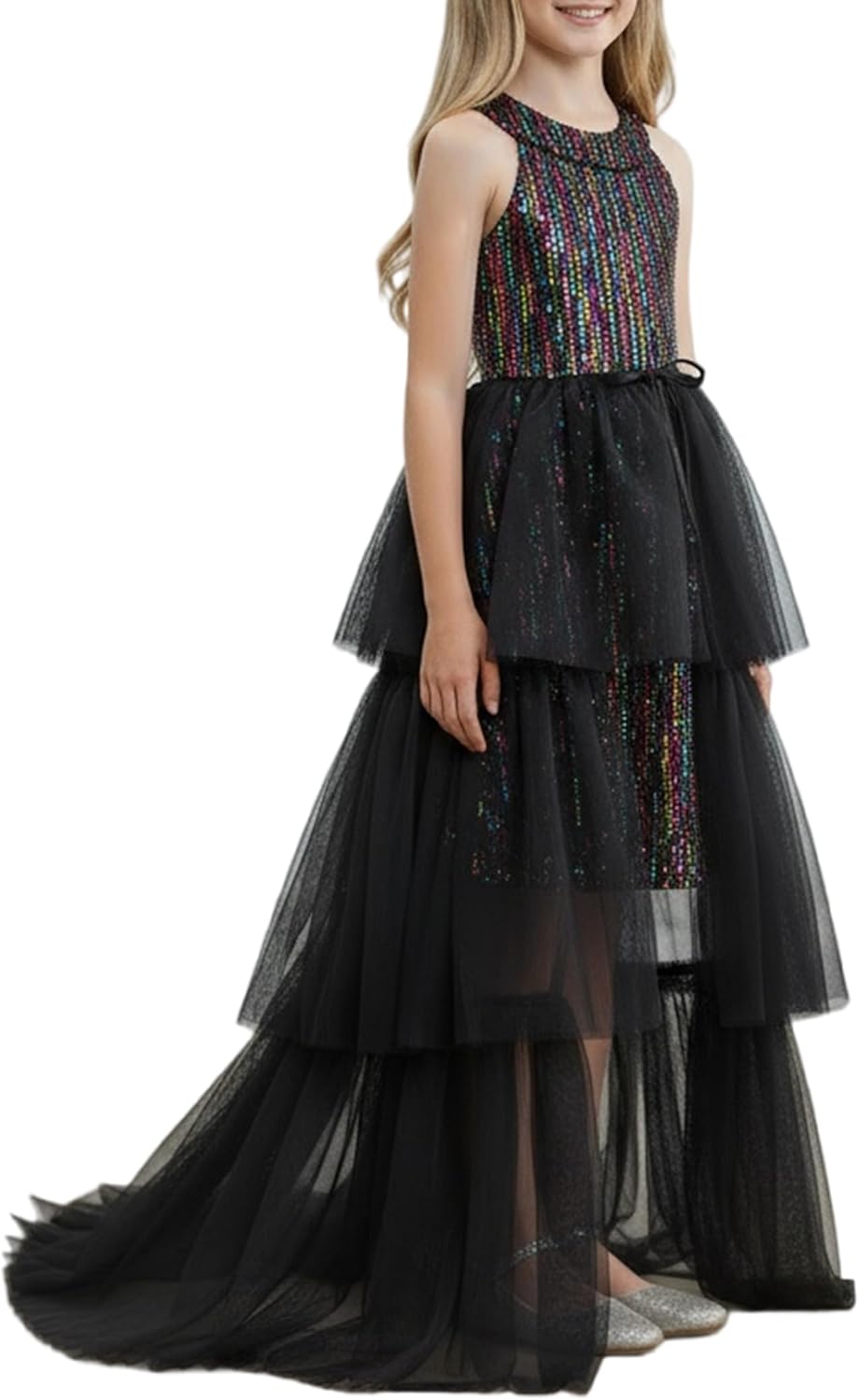 Girls Sequin Dress Halter Formal Pageant Prom Party Graduation Dress with Three Layer Mesh Size 5-14Y