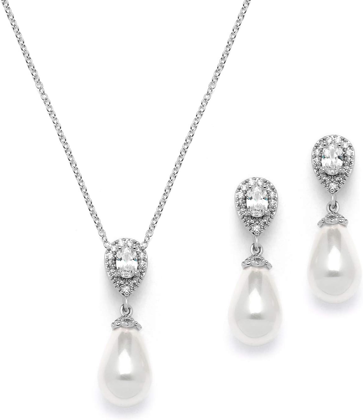 Mariell Pearl Drop Bridal Necklace and Earrings Set with CZ Crystals for Brides, Wedding, Birthday Gift