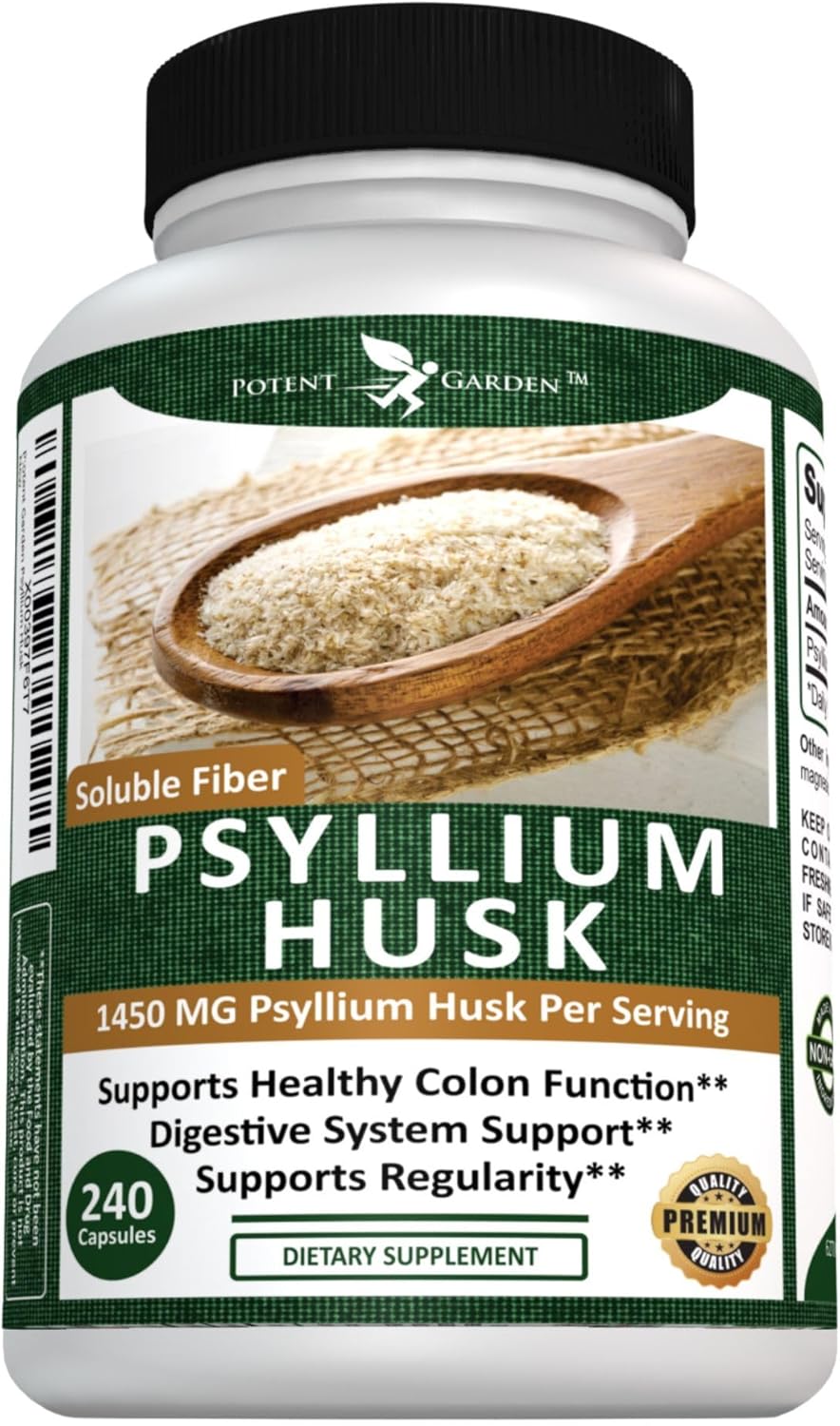 Potent Garden Psyllium Husk Capsules All Natural & Powerful Soluble Dietary Fiber Supplement Helps Support Regularity & Digestion, 240 Caps