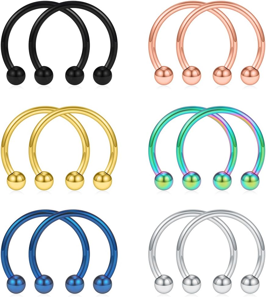 SCERRING 12PCS 10-14mm Stainless Steel Nose Horseshoe Hoop Rings Eyebrow Lip Ear Tragus Septum Piercing Hanger Retainer 16G 14G 12G