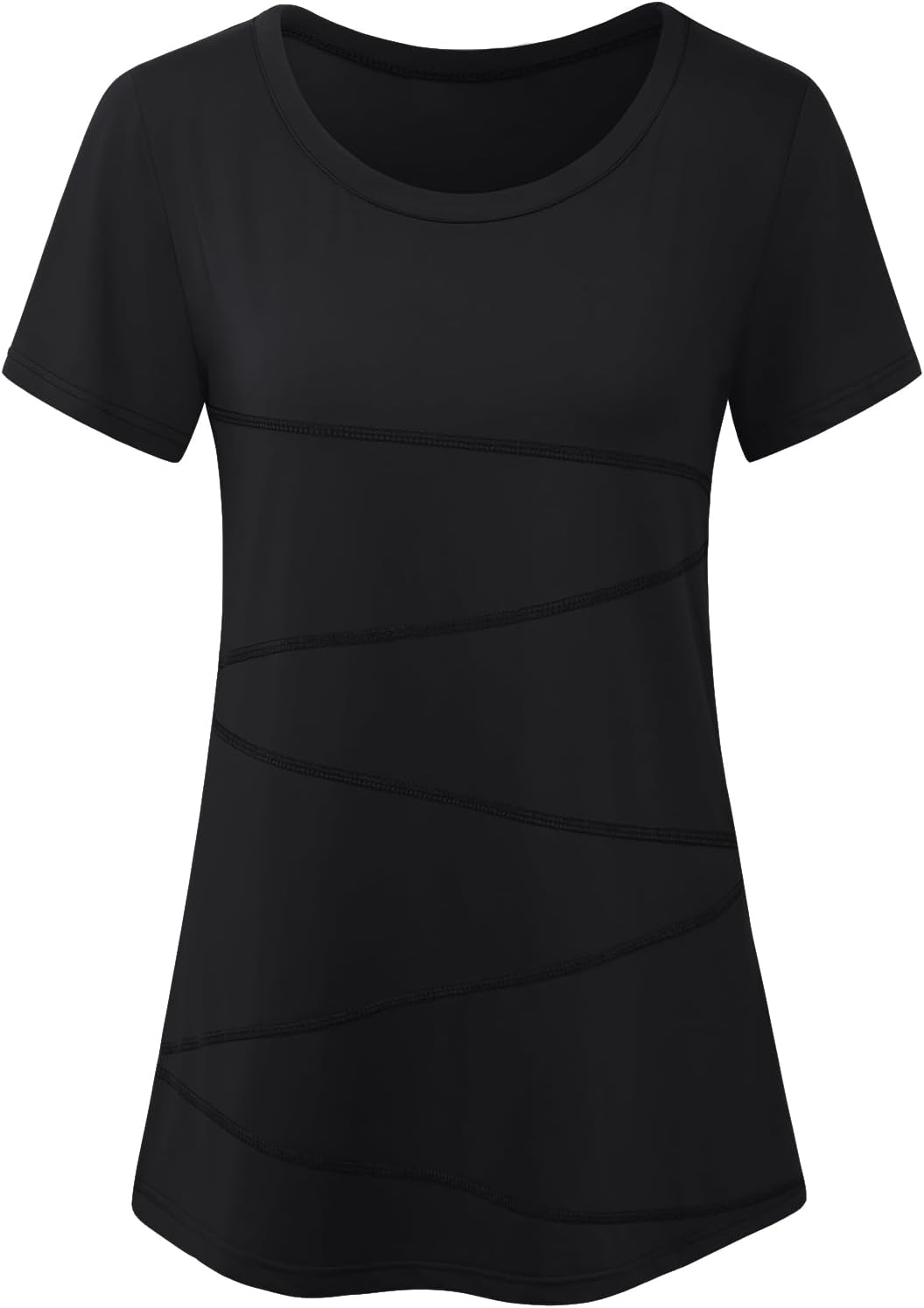 Workout Tops for Women Short Sleeve Shirts for Women Quick Dry Line Decor Yoga Tops