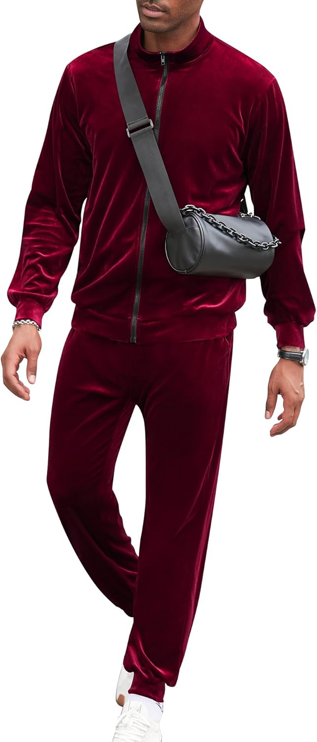 LecGee Mens 2 Piece Outfits Full Zip Velvet Long Sleeve Tracksuit Velour Casual Jogging Zipper Sweatsuit Set