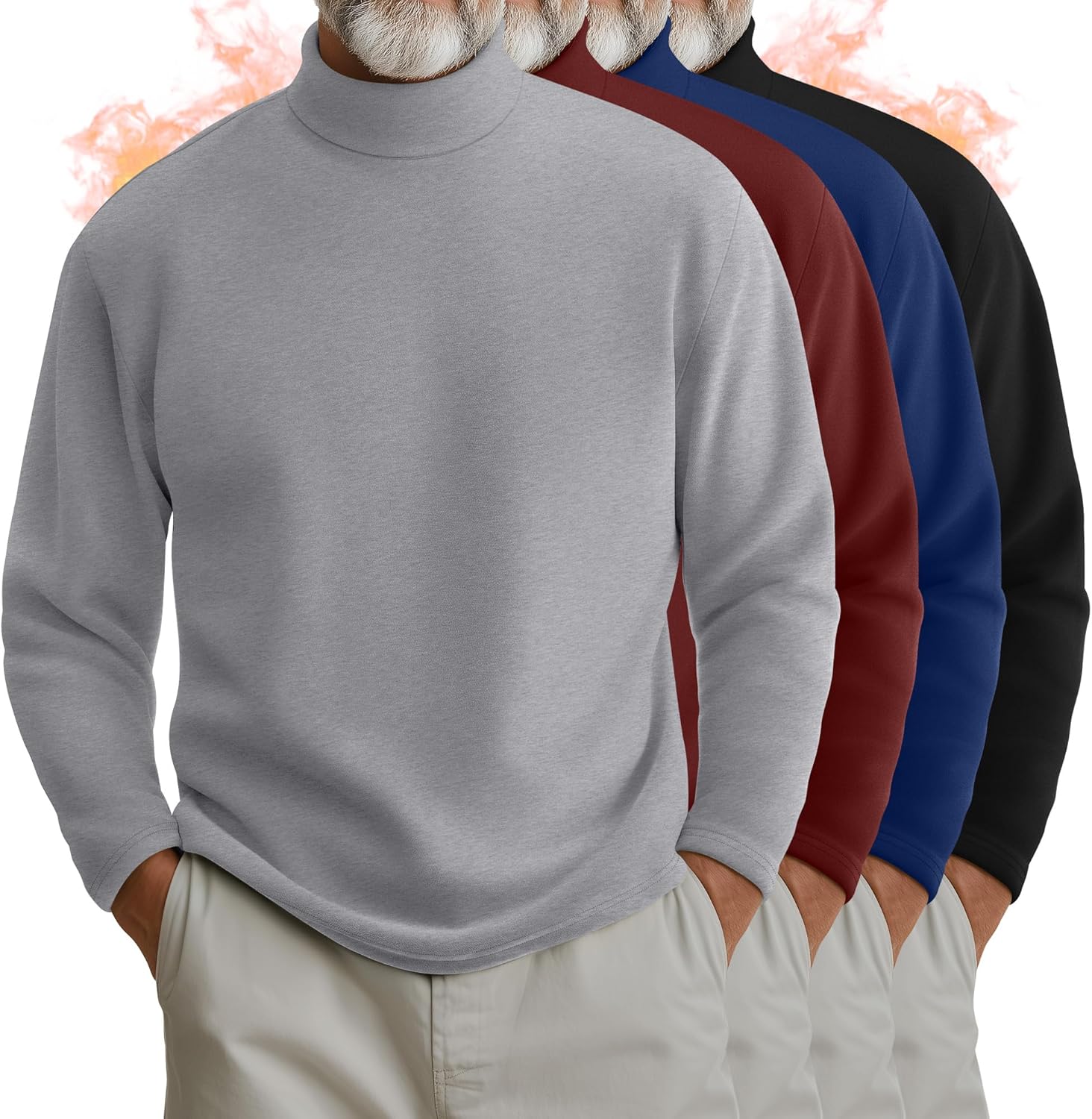 4 Pack Men's Turtleneck Shirts, Long Sleeve Thermal Sweaters Solid Casual Pullover Tops Basic Undershirts