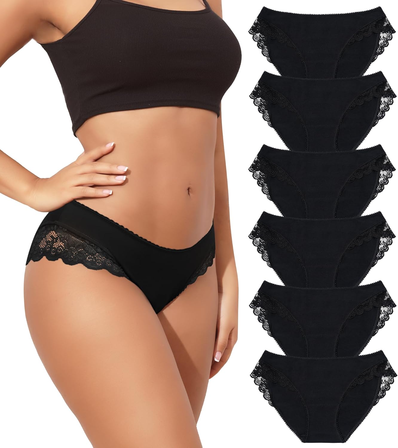 LEVAO Cotton Underwear for Women Lace Cheeky Ladies Brief Stretch Hipster Bikini Panties 6 Pack S-XXL